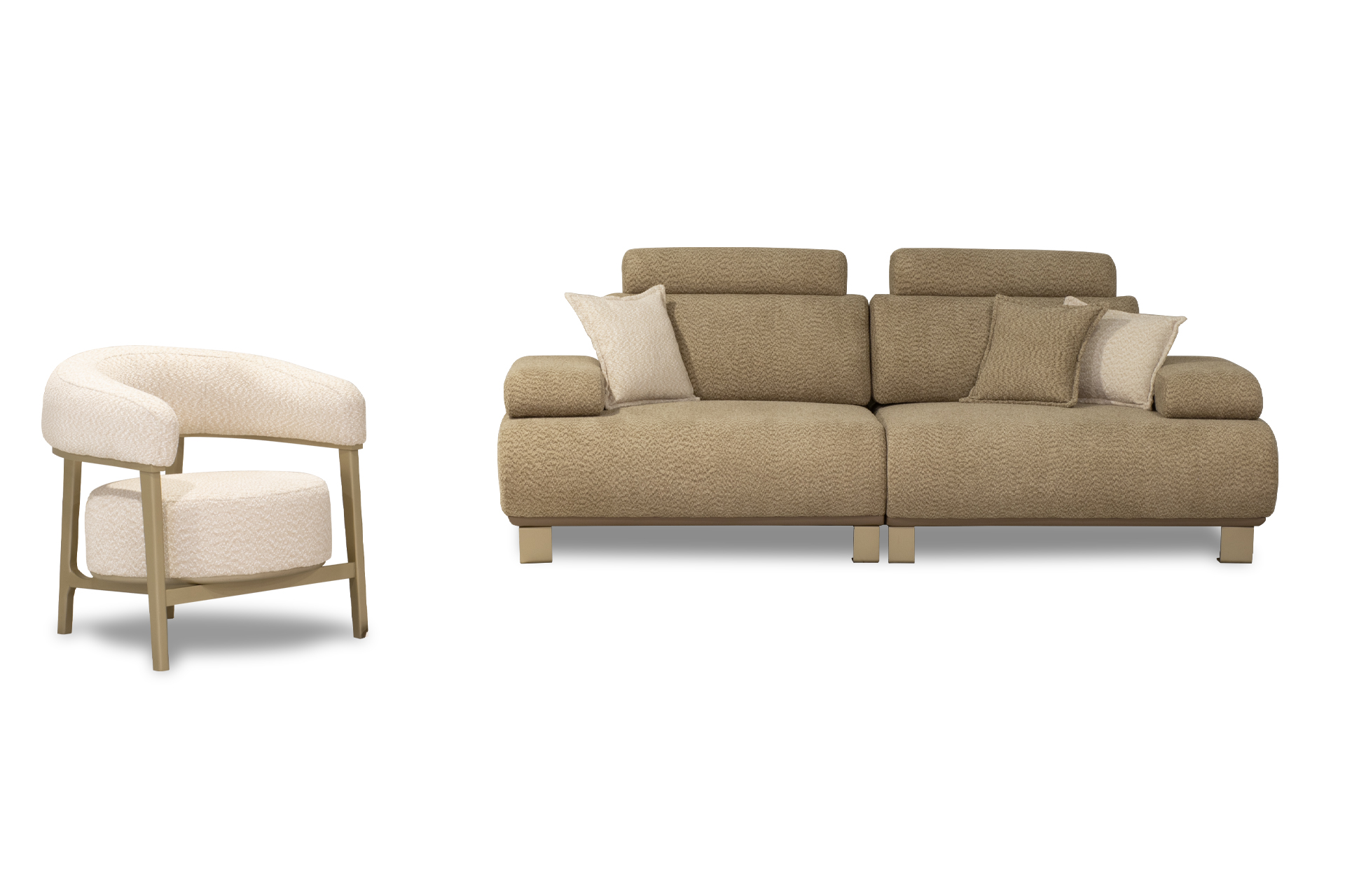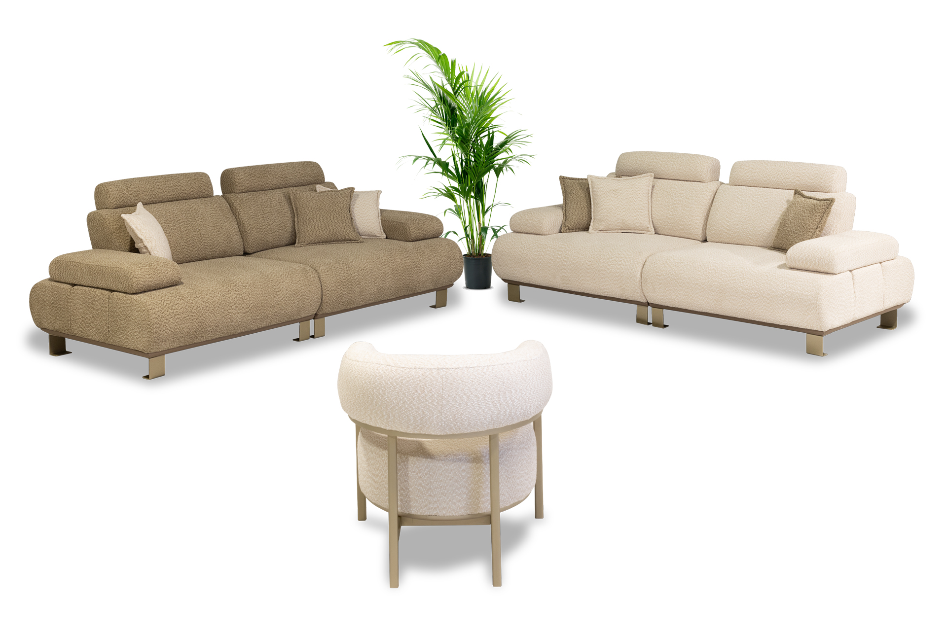 Oturum derinliği, ayak yüksekliği, sırt rahatlığı ile sınırsız renk ve kumaş seçenekleriyle