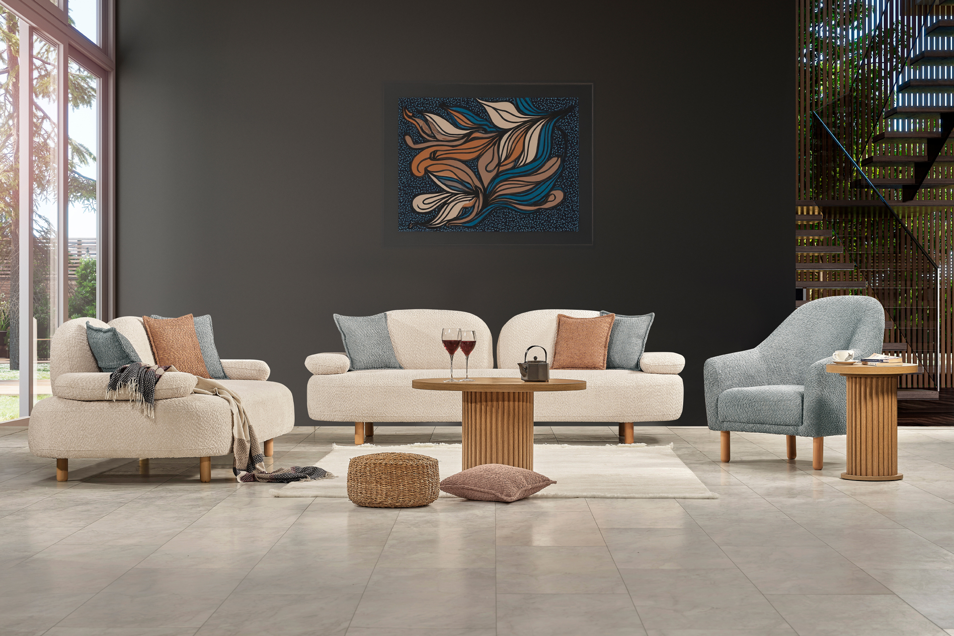 Bohem tarzının zamansız tasarımıyla; modern, estetik ve şık görünümüyle göz doldururken; oturum derinliği, ayak yüksekliği, sırt rahatlığı ile sınırsız renk ve kumaş seçenekleriyle